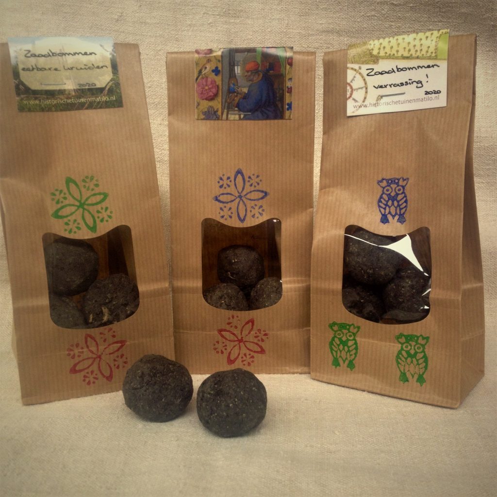 Een deel van ons zaaigoed verwerken we in zaadbommen. We hebben bloemenmengsels of geneeskrachtige kruidenmengsels. Voor de echte guerillatuinders! Maak je stenen leefomgeving een beetje groener! Prijs zakje zaadbommen (5 stuks): € 2,50