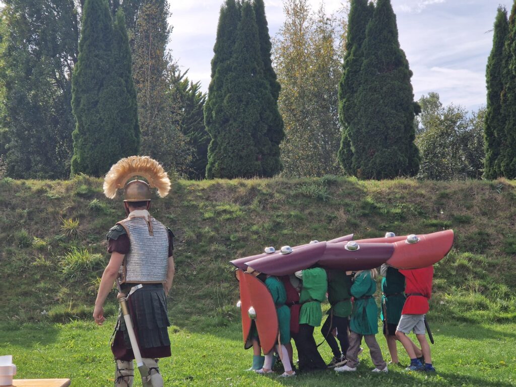 Het was een drukke dag in Park Matilo 21 september. Vanaf 11 uur tenten, bar en meubilair klaarzetten, koffie en thee zetten en de Fabrica openen, zodat het feest om 13 uur kon beginnen. Wat direct nodig was, was het werven en drillen van een peloton om de inwijding van de muurschildering ordelijk en veilig te laten verlopen. Zo’n twintig Romeinse jongen en meisjes hadden zich spontaan aangemeld, maar eenmaal in volle wapenrusting werden ze streng in het gelid gecommandeerd door een houwdegen van een centurion. Het zal het aanstaande 25-jarig contract zijn geweest waarom de jongste in huilen uitbarstte, maar het vooruitzicht op vastigheid, een goed pensioen en het Romeinse burgerschap na vervulde dienst moet de rest wel hebben gemotiveerd. Ze waren trouwens snel na tweeën terug om zich op de overige activiteiten te storten.