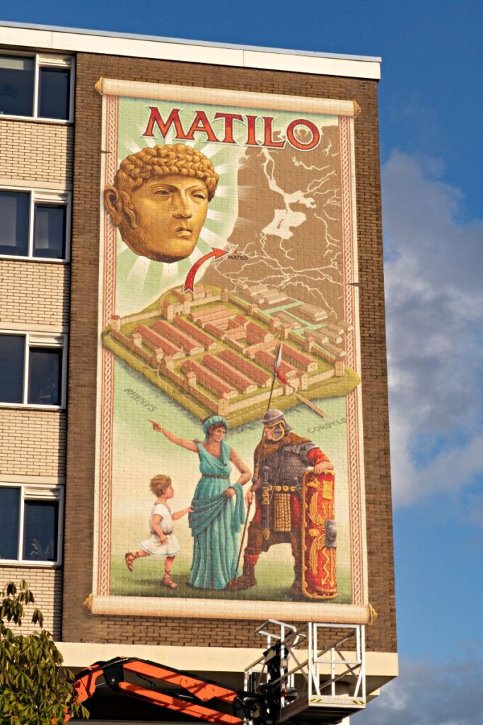 Alexander Geertsema, voorzitter van de Stichting Mooi Matilo, Ton van Wijk, projectleider bij het RMO, Judith Nijssen van het Mauritshuis, wijkvoorzitter Marten Ris en het Amsterdamse kunstenaarsduo Sander Pappot en Christiaan Dros gaven toelichting over de totstandkoming van de 18 meter hoge schildering op de muur van het appartementencomplex. Onder begeleiding van Romeins fluit- en trommelspel bracht een priesteres een plengoffer van Château-Matilowijn onder het uitspreken van een Latijnse bede tot de goden.